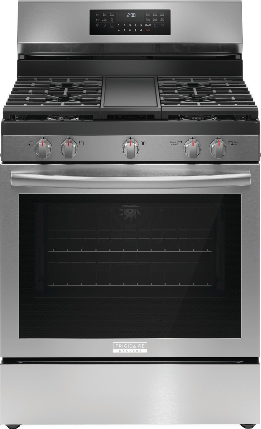 FRIGIDAIRE 30-in 5 Burners 5.1-cu ft Self & Steam Cleaning Air Fry Convection Oven Freestanding Natural Gas Range (Fingerprint Resistant Stainless Steel) MODEL# GCRG3060BF Stock# J7777