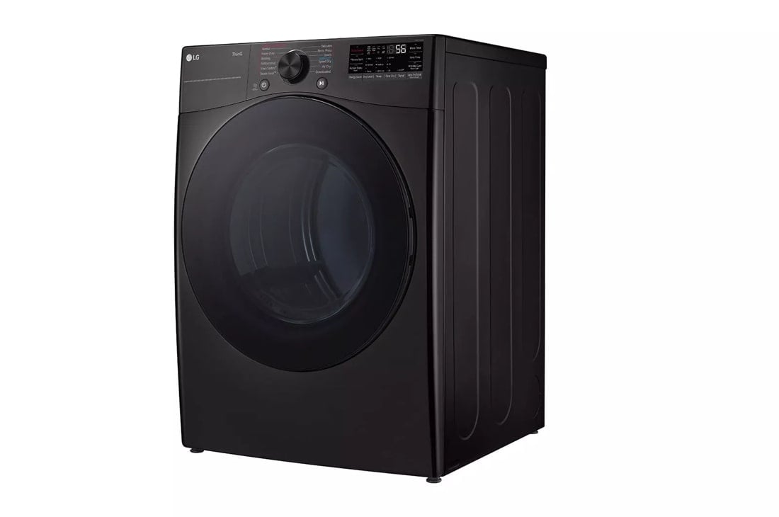 BackHomeLG (PED) True Steam 7.4-cu ft Stackable Steam Cycle Vented Smart Electric Dryer With Matching Pedestal (Black Steel) ENERGY STAR MODEL# DLEX4080B