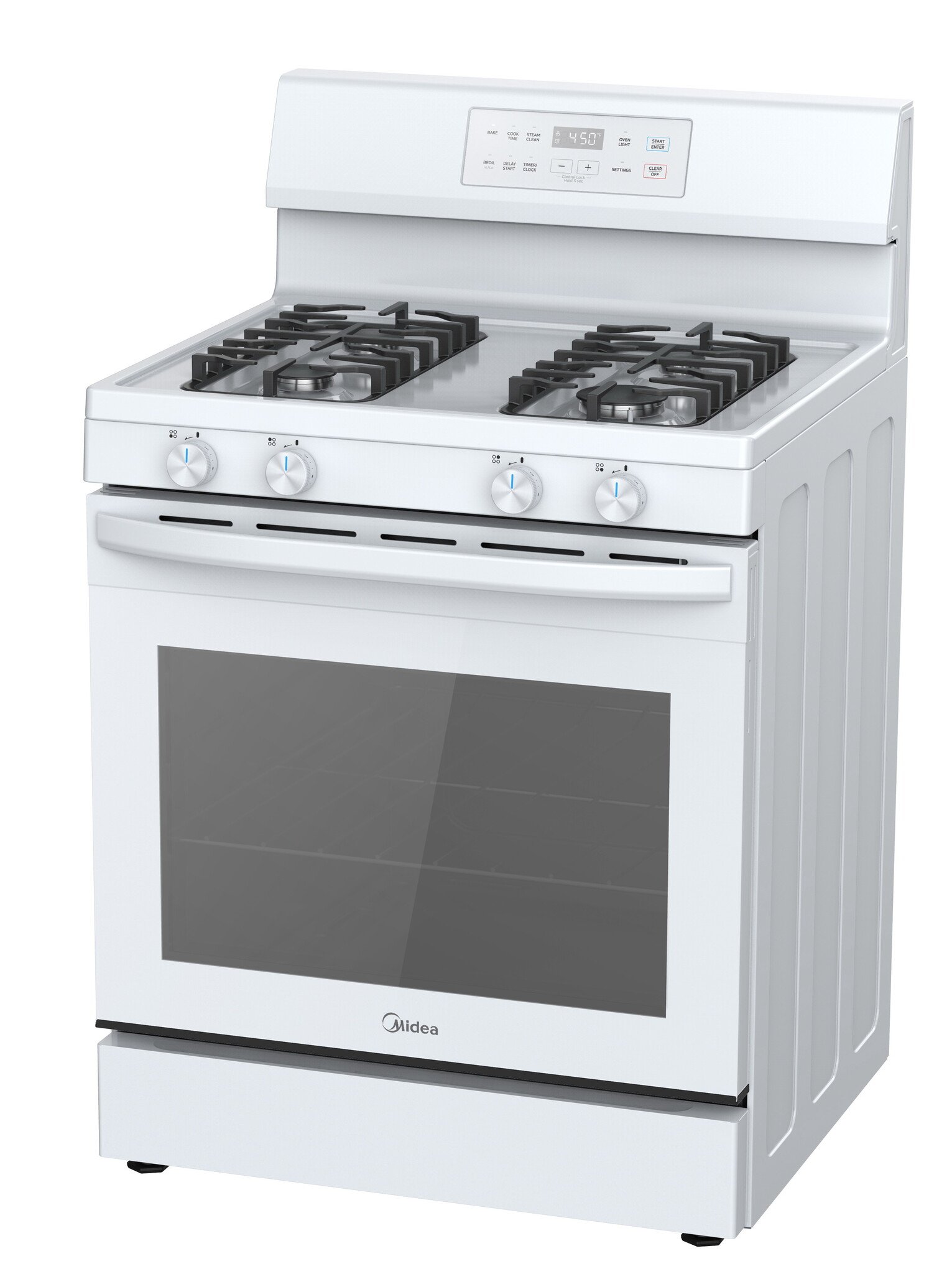 Midea (DS) 30-in 4 burners 6.1-cu ft Freestanding Natural Gas Range ( White ) Model# MGR30S2AWW